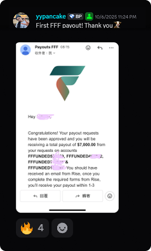 Traders are eligible to request a payout after completing seven winning trading days, each with at least $200 in profit, and meeting the 40% consistency rule. The maximum payout you can request depends on your payout stage and account size. The first $10,000 in total payouts is 100% yours with no profit split. Any amount earned beyond $10,000 is subject to a 90/10 profit split, with 90% going to the trader and 10% to the firm.