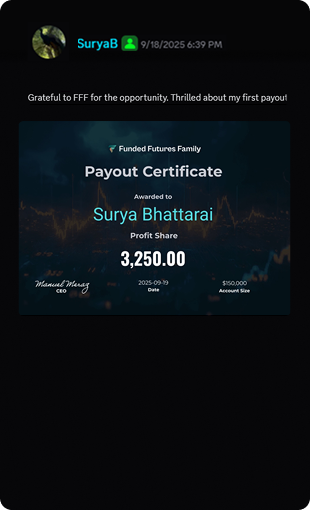 At Funded Futures Family, we provide traders with a structured pathway to achieve their trading goals. Our program is designed to reward consistency and performance, helping traders transition smoothly from evaluations to funded accounts and ultimately prepare traders for the live markets